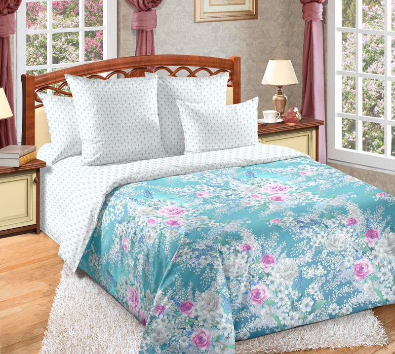 Уютная, добрая, милая сердцу классика постельный комплект с цветочным принтом пододеяльника и простым, выдержанным ромбовидным узором компаньона. По голубому фону полотна, словно на фоне летнего неба, разбросаны белоснежные пионы, розовые розы, белый жасмин и очаровательные полевые цветы. Бело-голубой орнамент компаньона служит прекрасным дополнением постельного ансамбля.